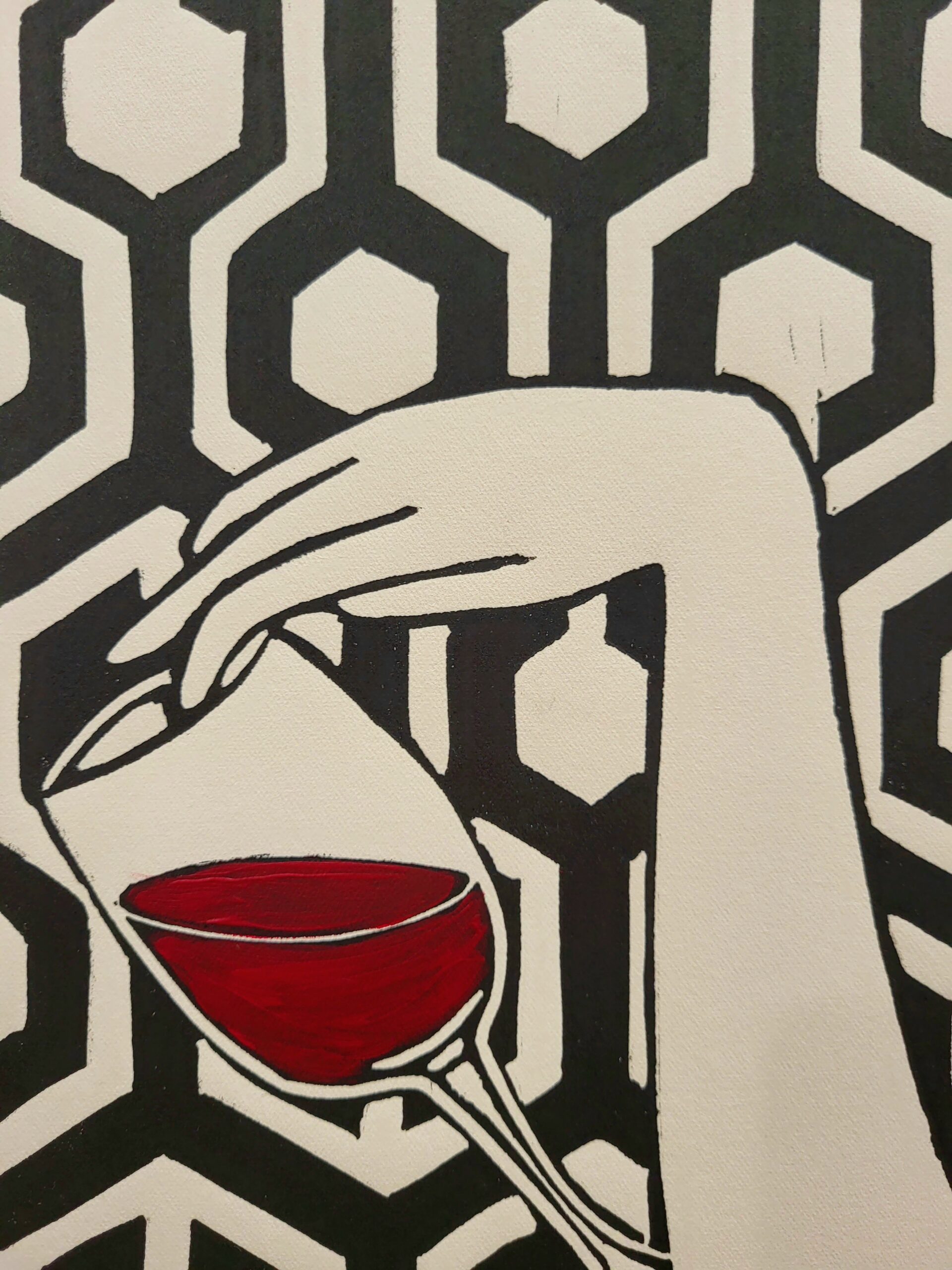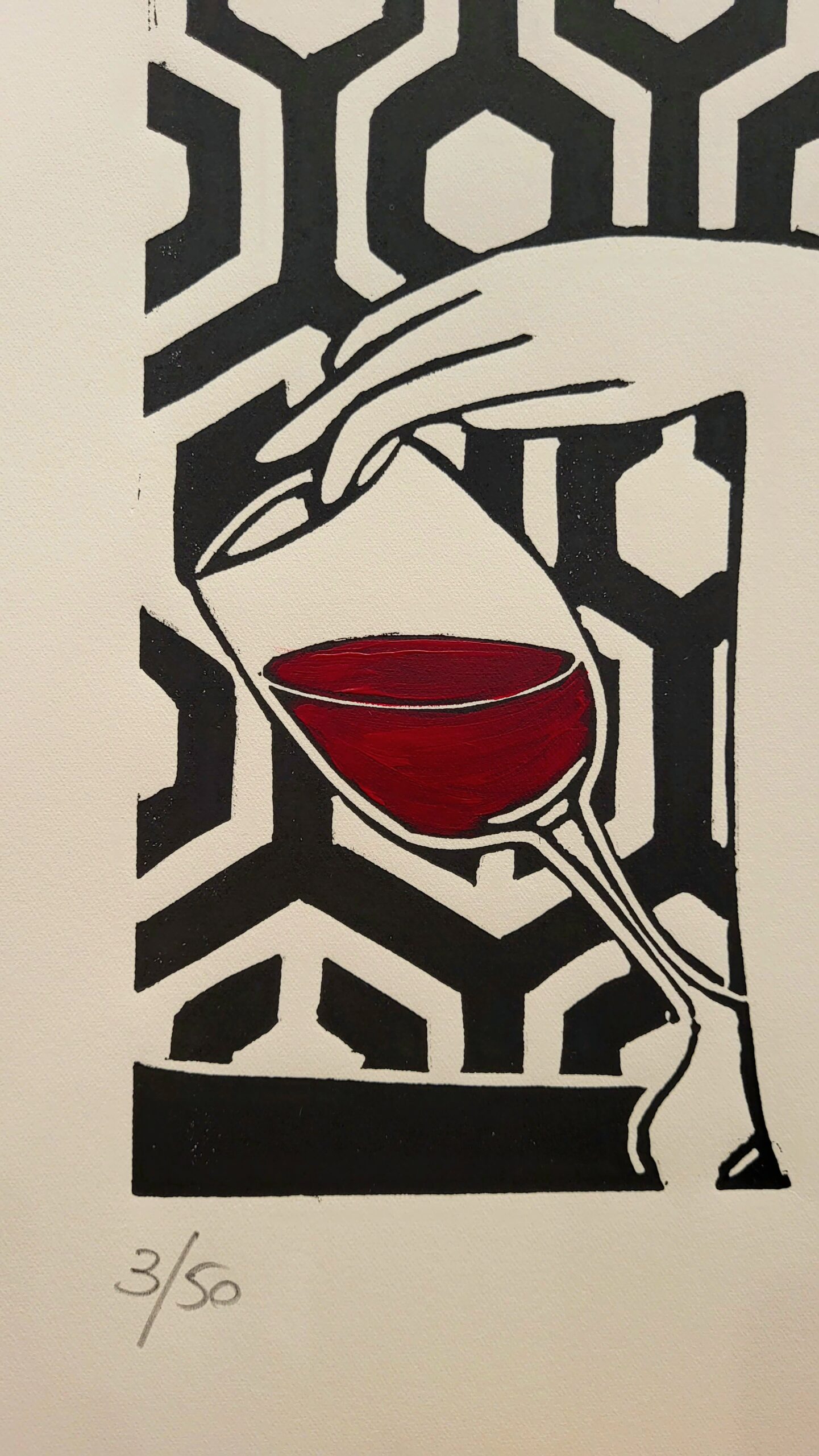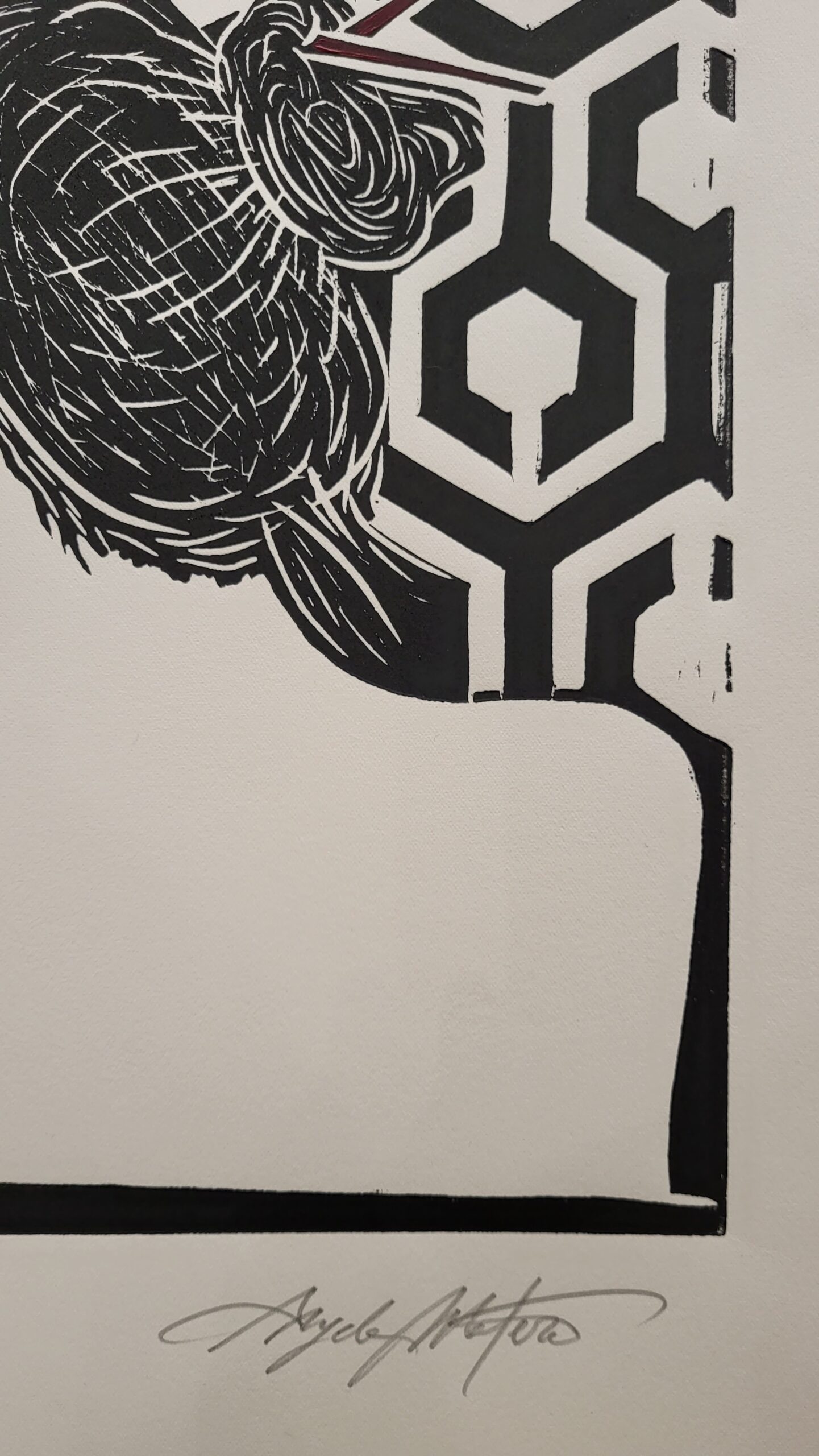 Linocut (+ Acrylic painting on the top ) printed with etching press on creme etching paper cm 64×46,5