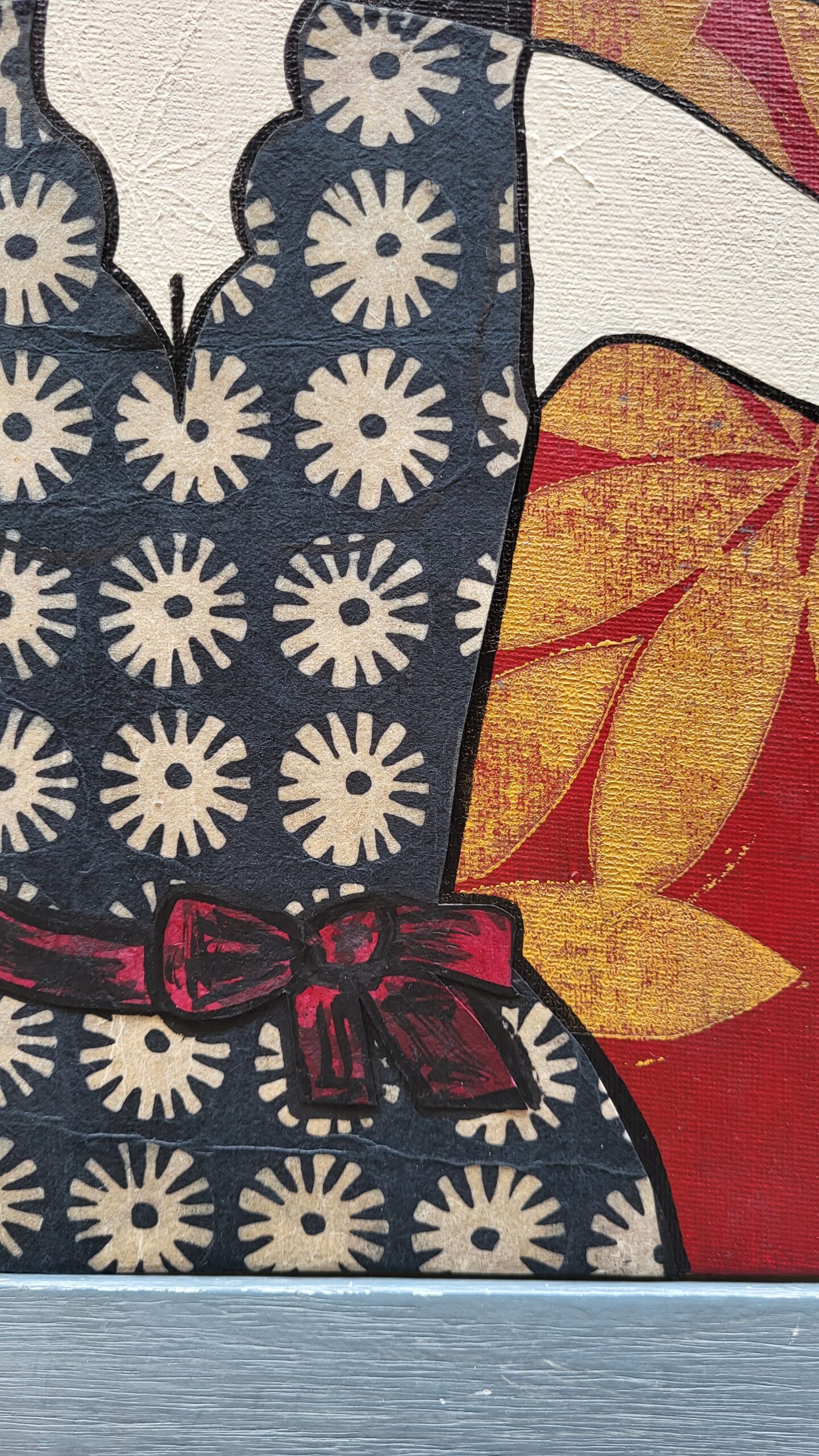 Mixed Media on canvas (Linocut, Acrylic painting, Collage)