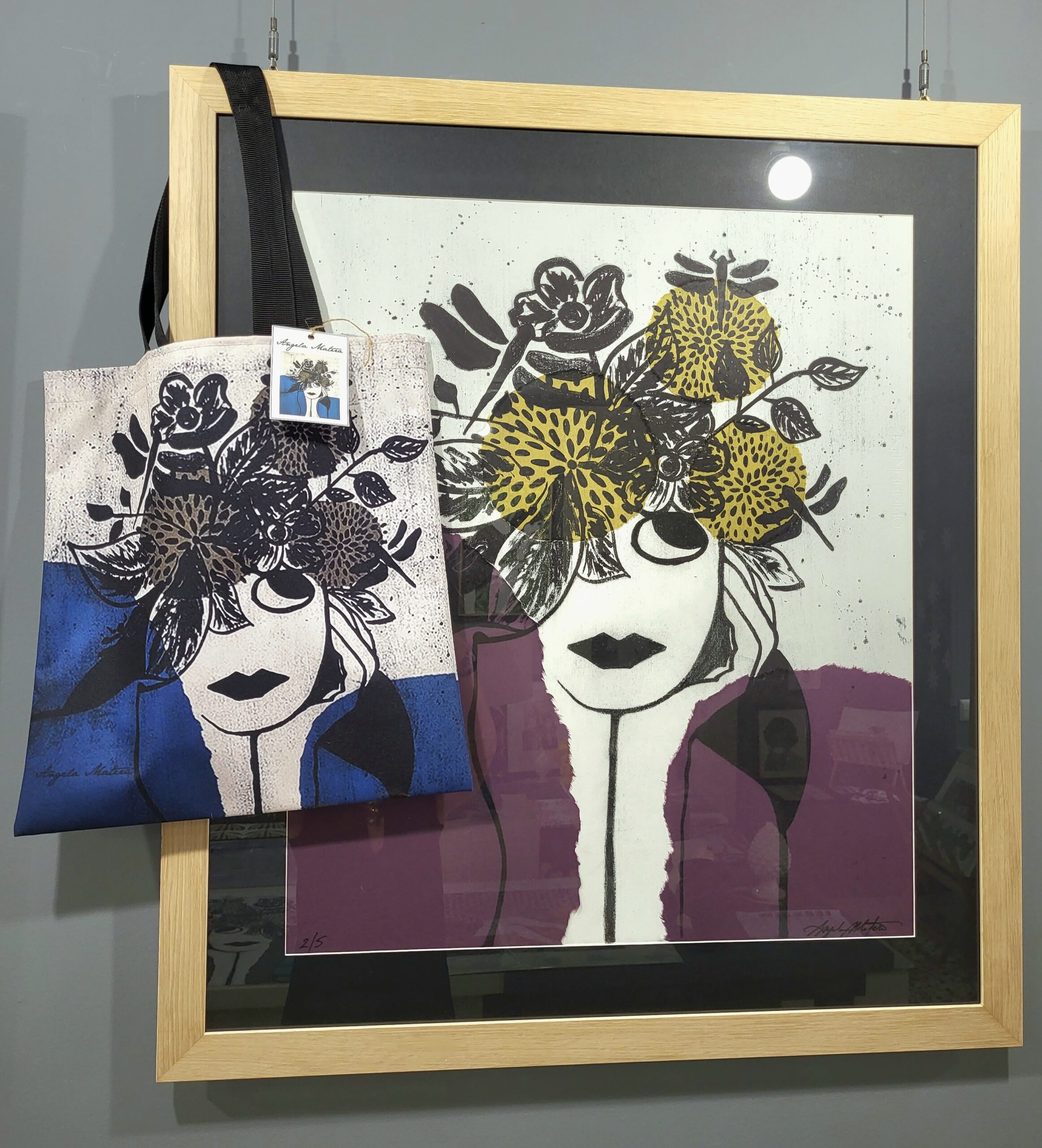 Pittura su tela, incisioni su linoleum, legno, zinco, collagraph, monoprint, collage…sono le tecniche che l’artista principalmente utilizza. La particolarità del lavoro consiste nell’arricchire ogni opera con collage di stoffe o carte acquistate durante i suoi viaggi, o realizzate da lei, che rendono le stampe “uniche” nonostante facciano parte di una tiratura limitata.